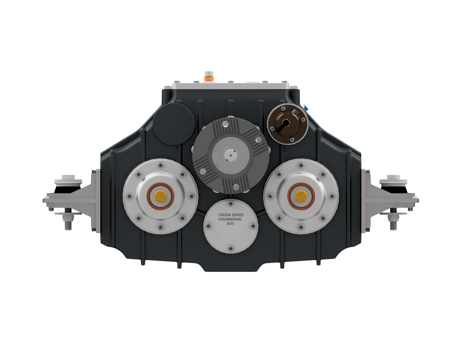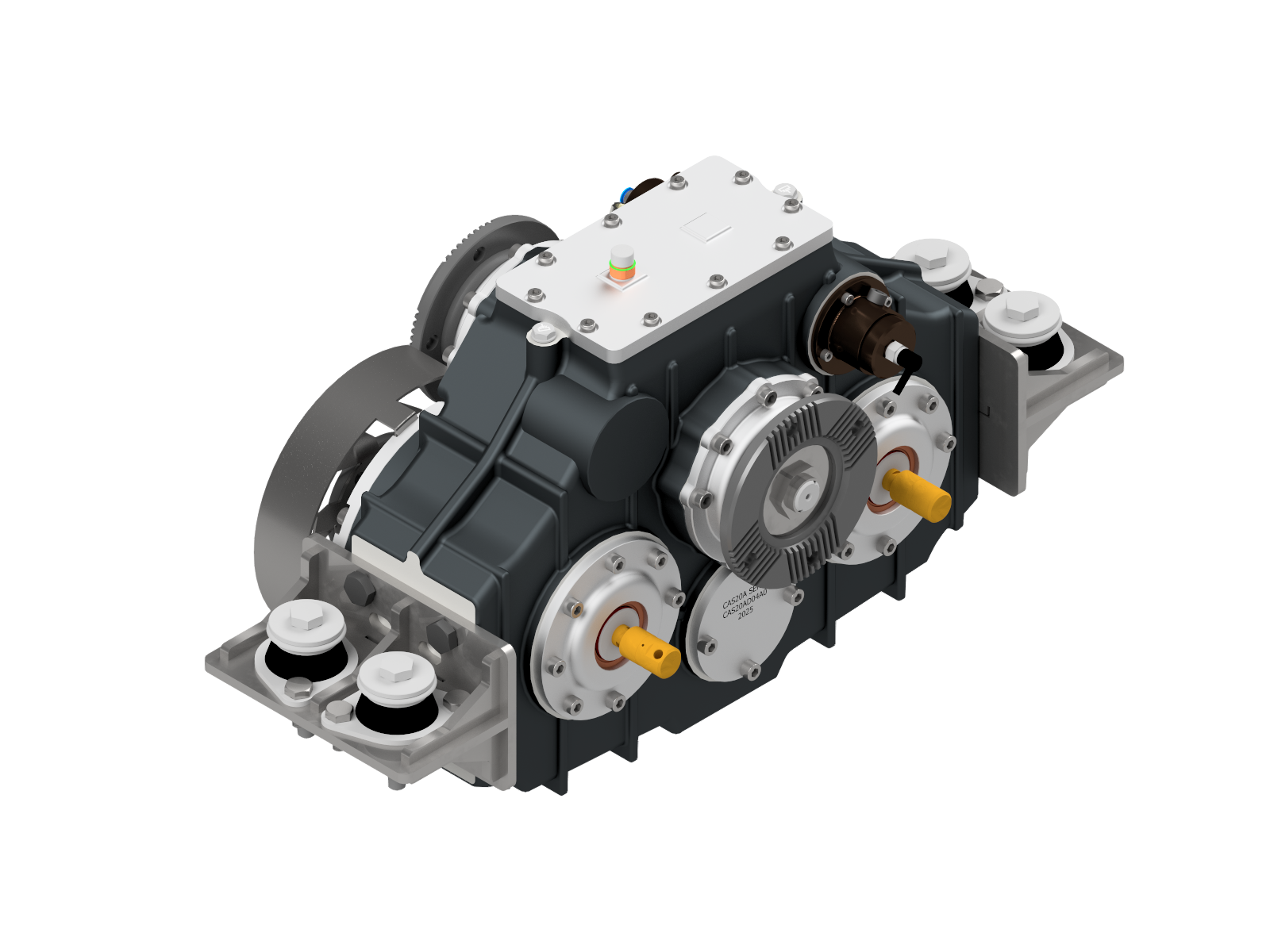 Technical Overview; Integrated Hot Shift Functionality, 2 PTO Outputs on Side Ports, 2 Service Pump Pads, Pneumatic Operation, Split Shaft Design, Counter to Input Rotation, Standard: 1 Year + 1 Year Additional, Guaranteed for 10 Years, Built for versatility and durability, this gearbox ensures seamless operation and long-term support, tailored to meet diverse industrial requirements.