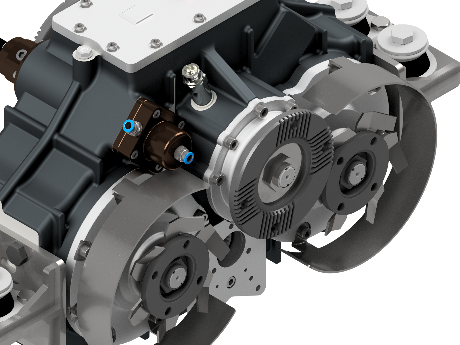 **Cooling Integration**: An optional cooling system can be mounted on the gearbox for thermal management during demanding operations.
