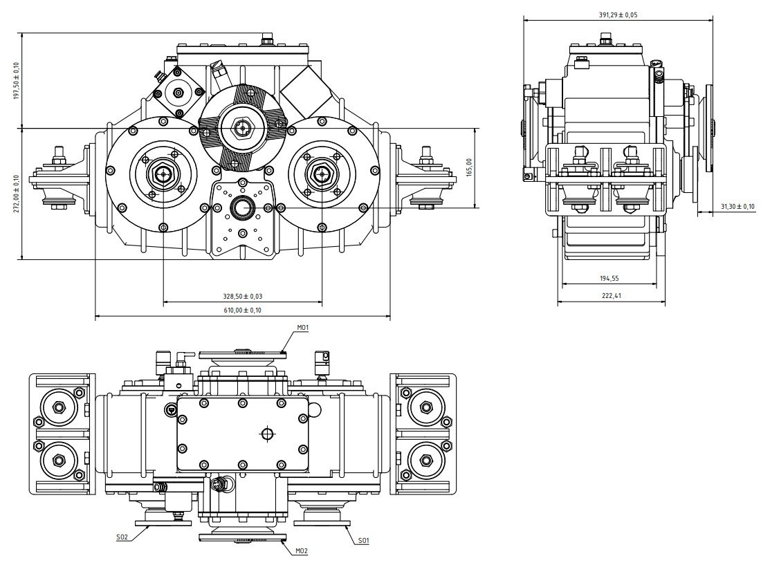**PTO Flexibility**: The PTO (Power Take-Off) output can be configured on either the differential side or cabin side. PTO outputs are available with ISO standard flanges or customized housings compatible with a wide range of hydraulic pumps.