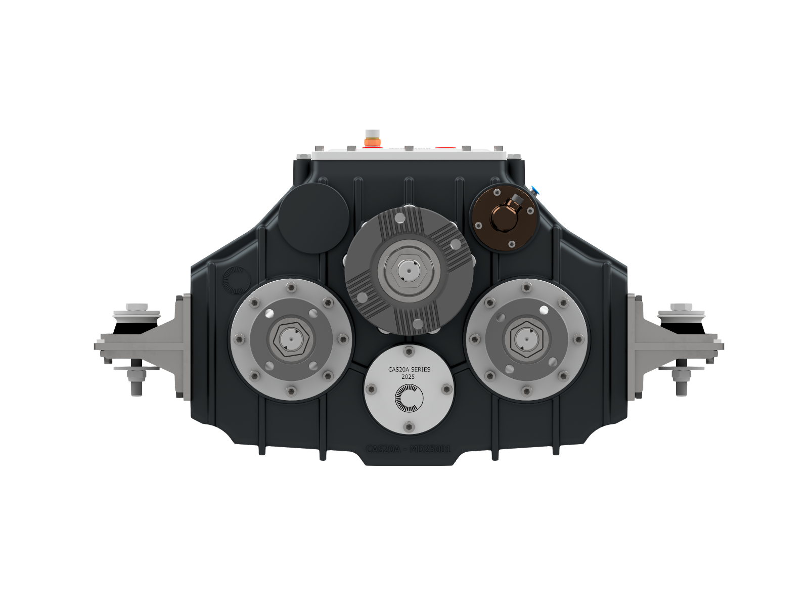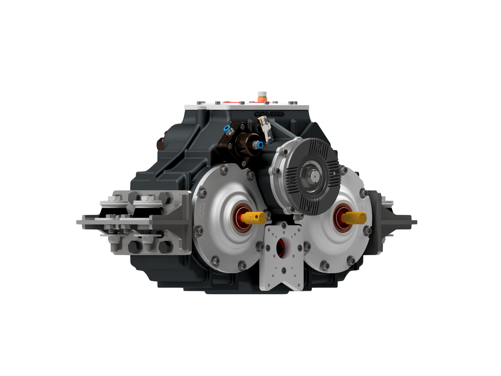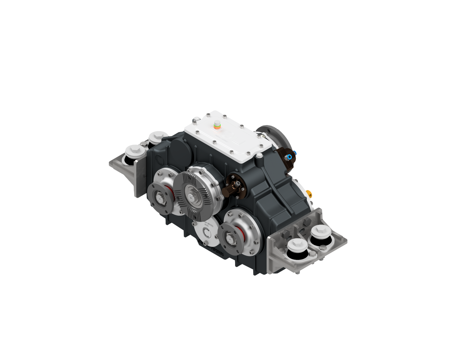 Technical Overview; Integrated Hot Shift Functionality, 2 PTO Outputs on Side Ports, 2 Service Pump Pads, Pneumatic Operation, Split Shaft Design, Counter to Input Rotation, Standard: 1 Year + 1 Year Additional, Guaranteed for 10 Years, Built for versatility and durability, this gearbox ensures seamless operation and long-term support, tailored to meet diverse industrial requirements.
